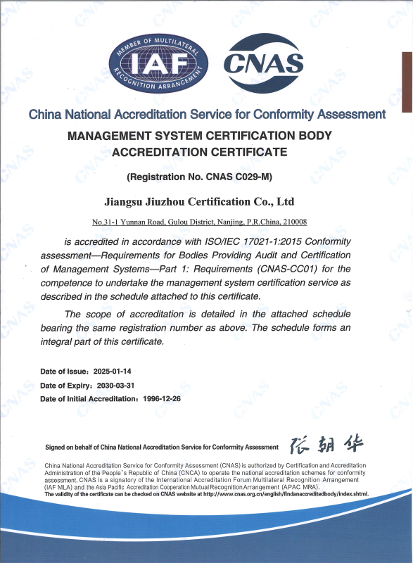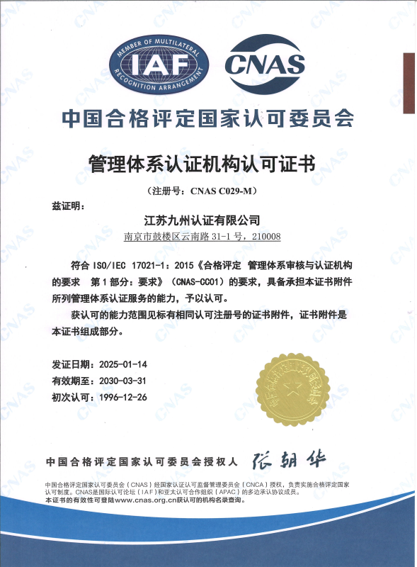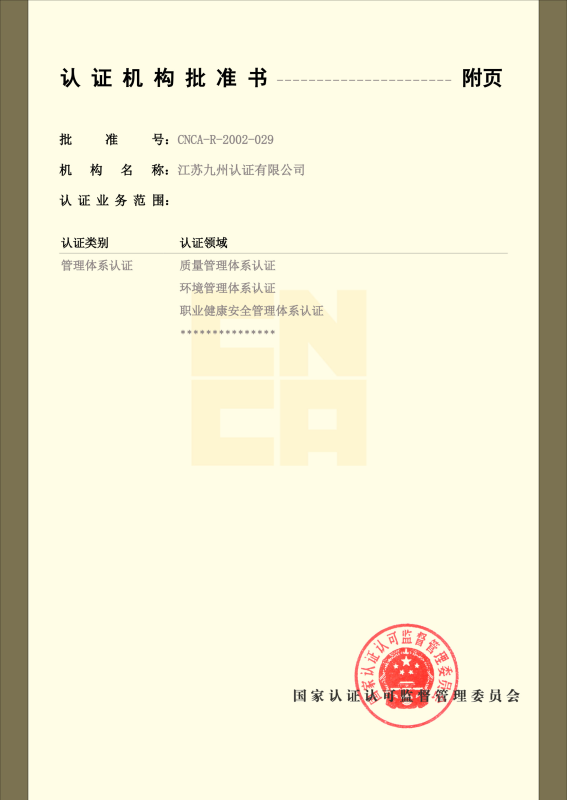 管理體系認(rèn)可證書-中文