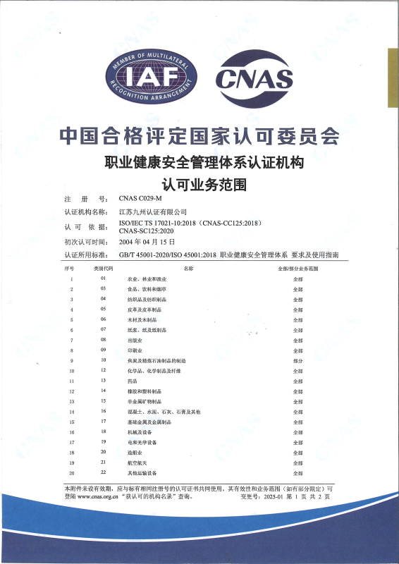 職業(yè)健康安全管理體系認(rèn)可業(yè)務(wù)范圍-中文2